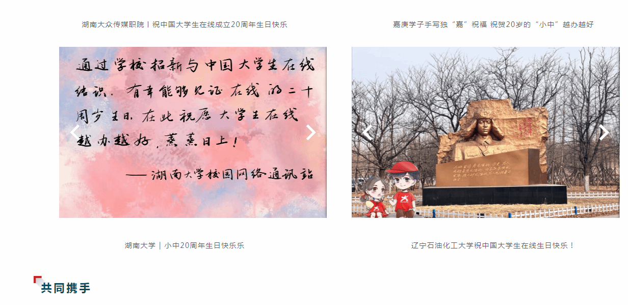 编者按:近日,中国大学生在线开展20周年互动征集,我校校网通站学生制作系列图集祝小中生日快乐,中国大学生在线网对此进行了宣传。现将相关报道转载如下: