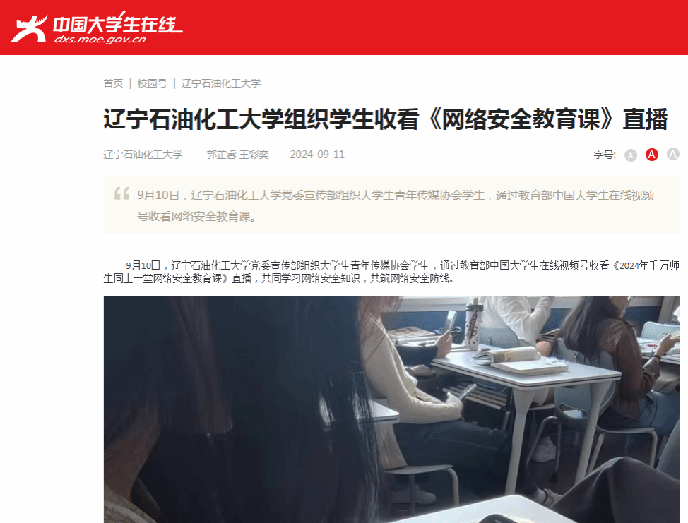 编者按:9月10日,国产亚洲综合一区二区三区_亚洲欧美日韩中文天堂_尤物在线观看视频不卡无码_国产最新精品亚洲2025不卡_亚洲成Av人在线观看片水蜜桃党委宣传部组织大学生青年传媒协会学生,通过教育部中国大学生在线视频号收看《2024年千万师生同上一堂网络安全教育课》直播,共同学习网络安全知识,共筑网络安全防线。教育部中国大学生在线网、中国大学生网、搜狐号等对此进行了宣传报道。现将相关报道转载如下: