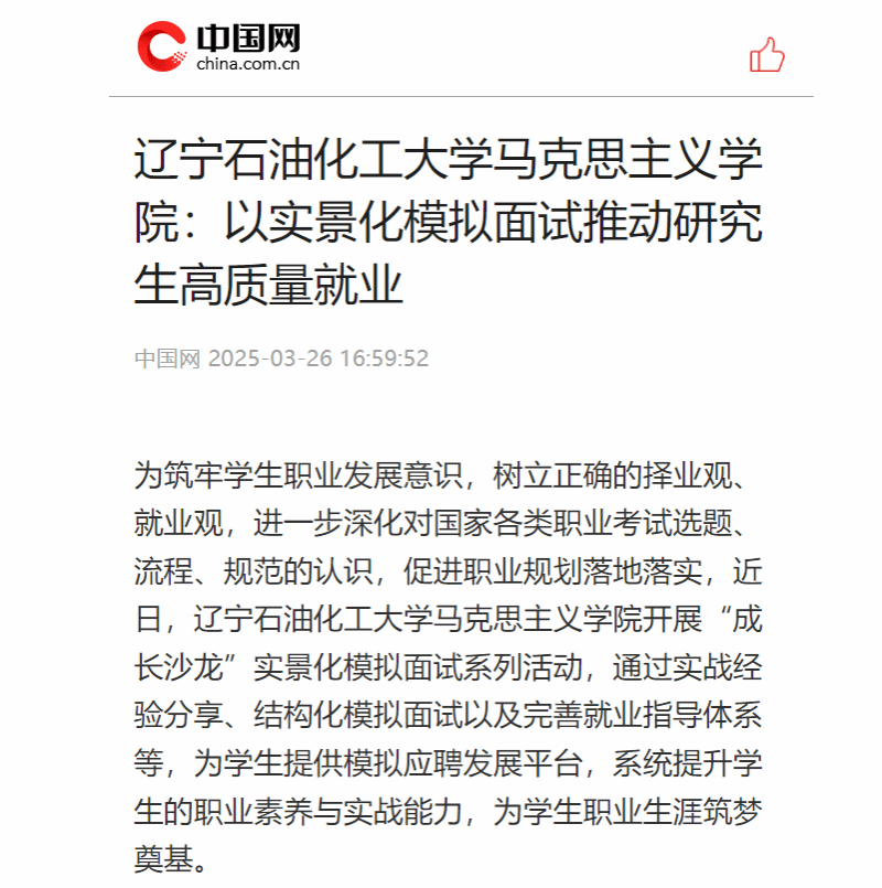 编者按:近日,中国网(客户端)、“中国企业报”集团官网、中国基层网、辽宁党建网等媒体平台对我校李一鸣老师撰写的“国产亚洲综合一区二区三区_亚洲欧美日韩中文天堂_尤物在线观看视频不卡无码_国产最新精品亚洲2025不卡_亚洲成Av人在线观看片水蜜桃马克思主义学院:以实景化模拟面试推动研究生高质量就业”的文章进行了转载报道。现将相关报道转载如下: