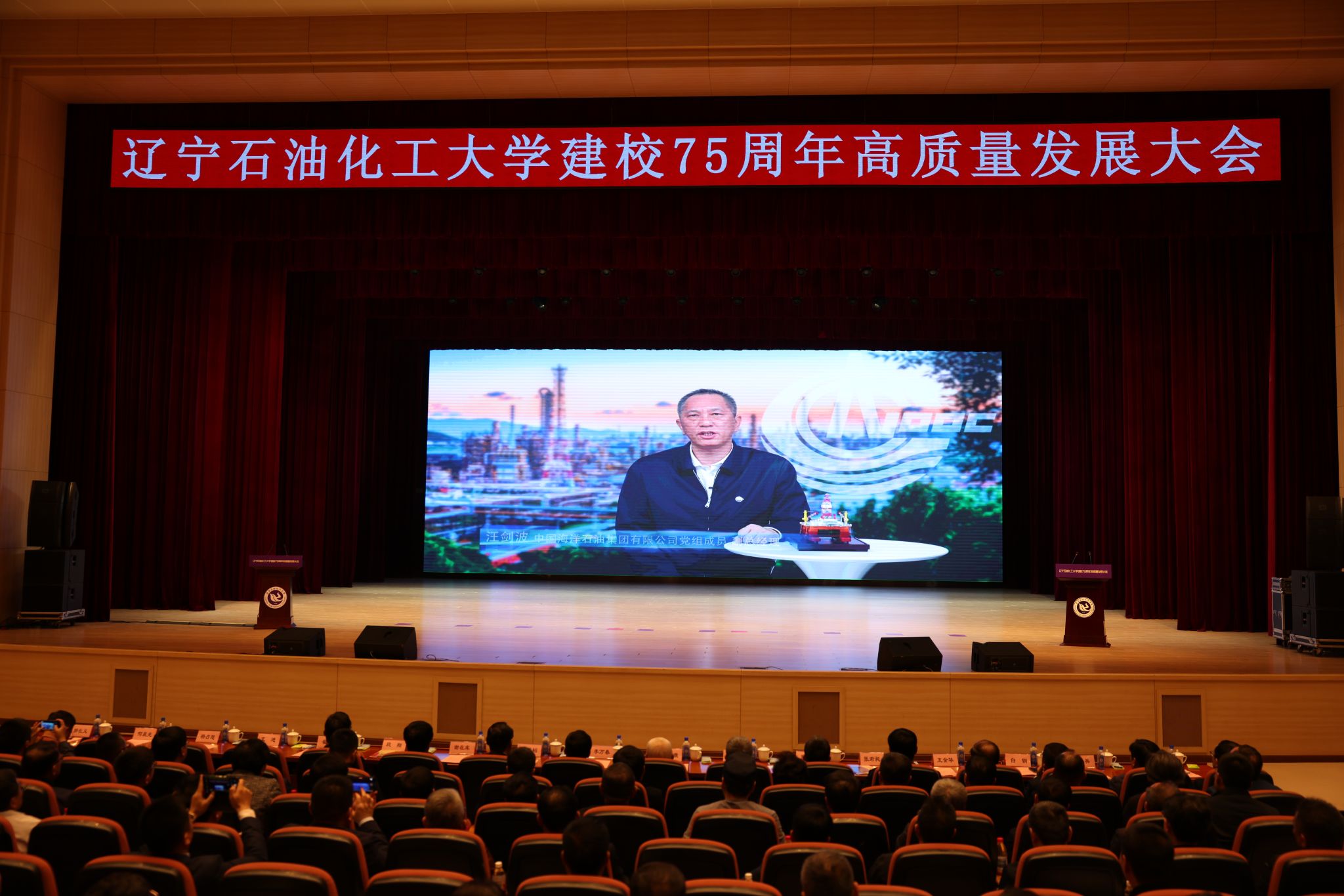 校友企业家代表、中国海洋石油集团有限公司党组成员、副总经理汪剑波通过视频,深情回忆母校引领自己从技术岗位迈向能源管理一线,坚定践行“为祖国奉献燃烧的爱”的使命担当。期待与母校在新能源、数智化等领域深化合作,推动人才链与产业链深度融合,为国家能源战略贡献力量。校友企业家代表、中国石油抚顺石化公司总经理白钢祝贺母校建校75周年,表示未来将发挥行业契合度高,地域同城等优势,共建工程师培训基地,打造校企合作新典范。中国科学院院士谢在库作为校友科学家代表致辞。他深情回顾在校求学经历,感恩恩师培养,高度赞誉学校发展成就,强调“抚油精神”对其科研生涯的深远影响,并承诺将凝聚校友力量,全力支持母校学科建设、科技创新等工作,助力学校增列博士学位授予单位。