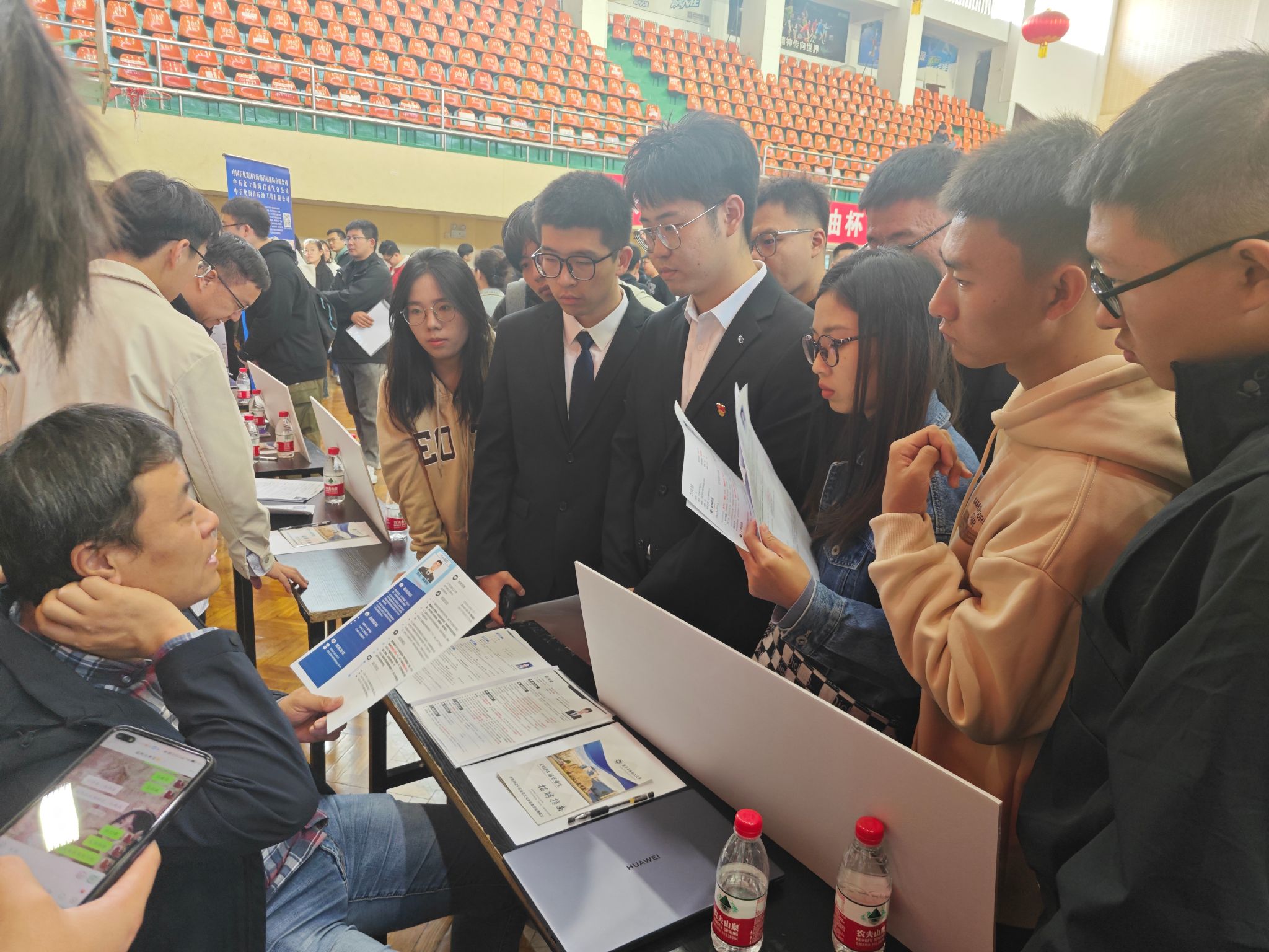 双选会现场人头攒动、气氛热烈。用人单位和毕业生参与热情高涨。毕业生现场投递简历,双方就工作内容、岗位职责、发展前景、薪资待遇等进行交流洽谈。毕业生普遍反映参会单位及招聘岗位质量非常高。招生就业办公室还在现场设置“政策咨询”“就业指导”宣传专区,为毕业生提供多层次全方位的“一站式”就业指导服务。